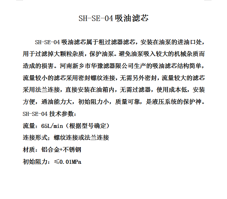 SH-SE-04吸油濾芯 韓國(guó)SHC濾芯
