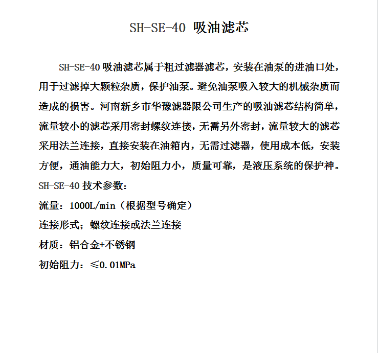韓國(guó)SHC吸油濾芯SH-SE-40