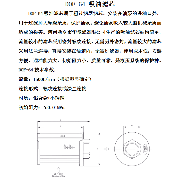 韓國SHC濾芯DOF-64吸油濾芯