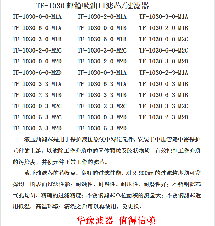 TF-1030油箱吸油口濾芯/過濾器